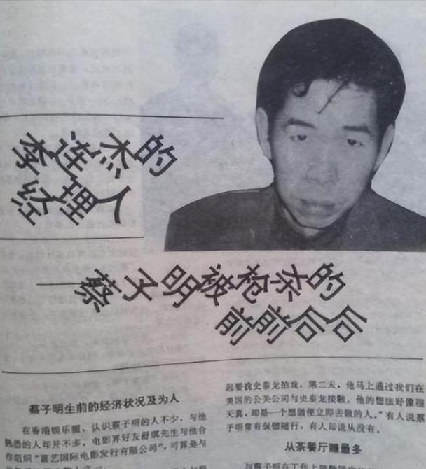 1993年5月7日,枪手伪装成清洁工,在蔡子明公司楼下连开九枪,致其当场毙命。李连杰吓得连夜逃回北京,警方更是派出9名便衣贴身保护。